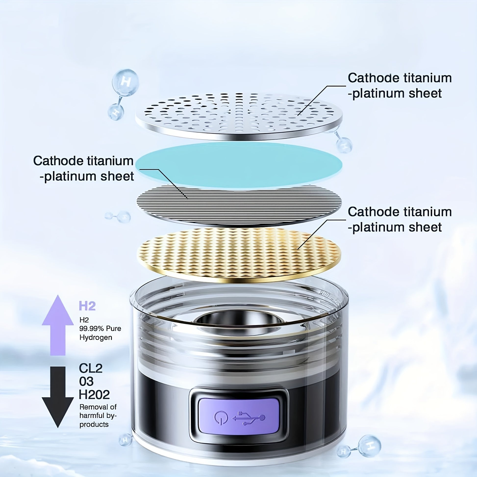 1pc H2 1.5L Portable Hydrogen Water Bottle with USB Charging, PPSU Material, Sealable Lid, Latest SPE PEM Technology for Quick Ionization, Ideal for Home, Office, Travel & Outdoor Activities, Portable Water Bottle | Sleek Des